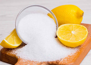 L’acide citrique se trouve naturellement dans les agrumes et plus particulièrement dans le citron. Il est produit par fermentation des glucides de matières premières végétales (maïs, tapioca, manioc, patate douce). Fine poudre cristalline blanche, inodore, soluble dans l’eau avec un pH de 2,2 (solution à 0.1%).